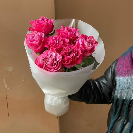 7 кустовых пионовидных роз мэнсфилд парк с эвкалиптом. Букет 22 KimFlo