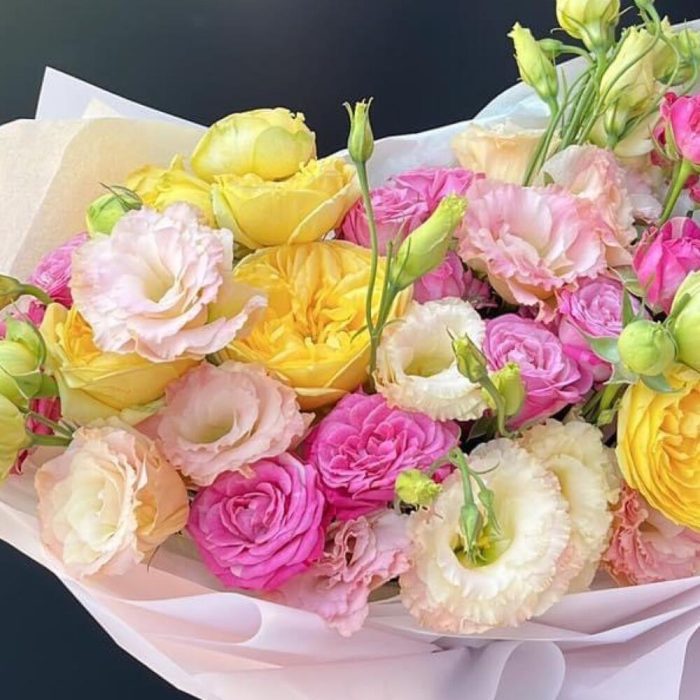 Гвоздики, Лизиантусы, Розы