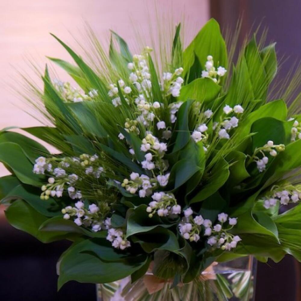 ландыши – 25 шт.Упаковка дизайнерская – 1 шт.Лента атласная – 1 шт.Открытка – 1 шт.инструкция по уходу за цветами – 1 шт.хорошее настроение – 100 шт.коробка переноска – 1 шт.Кризал – 1 шт.