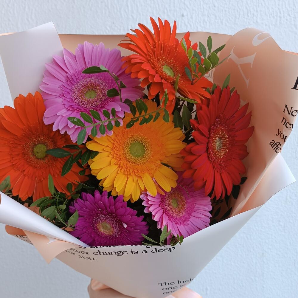 Весёлый микс ярких гербер подарит прекрасное настроение и море позитивных эмоций
