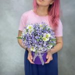 “Сиреневый туман” – композиция из гипсофилы в шляпной коробке