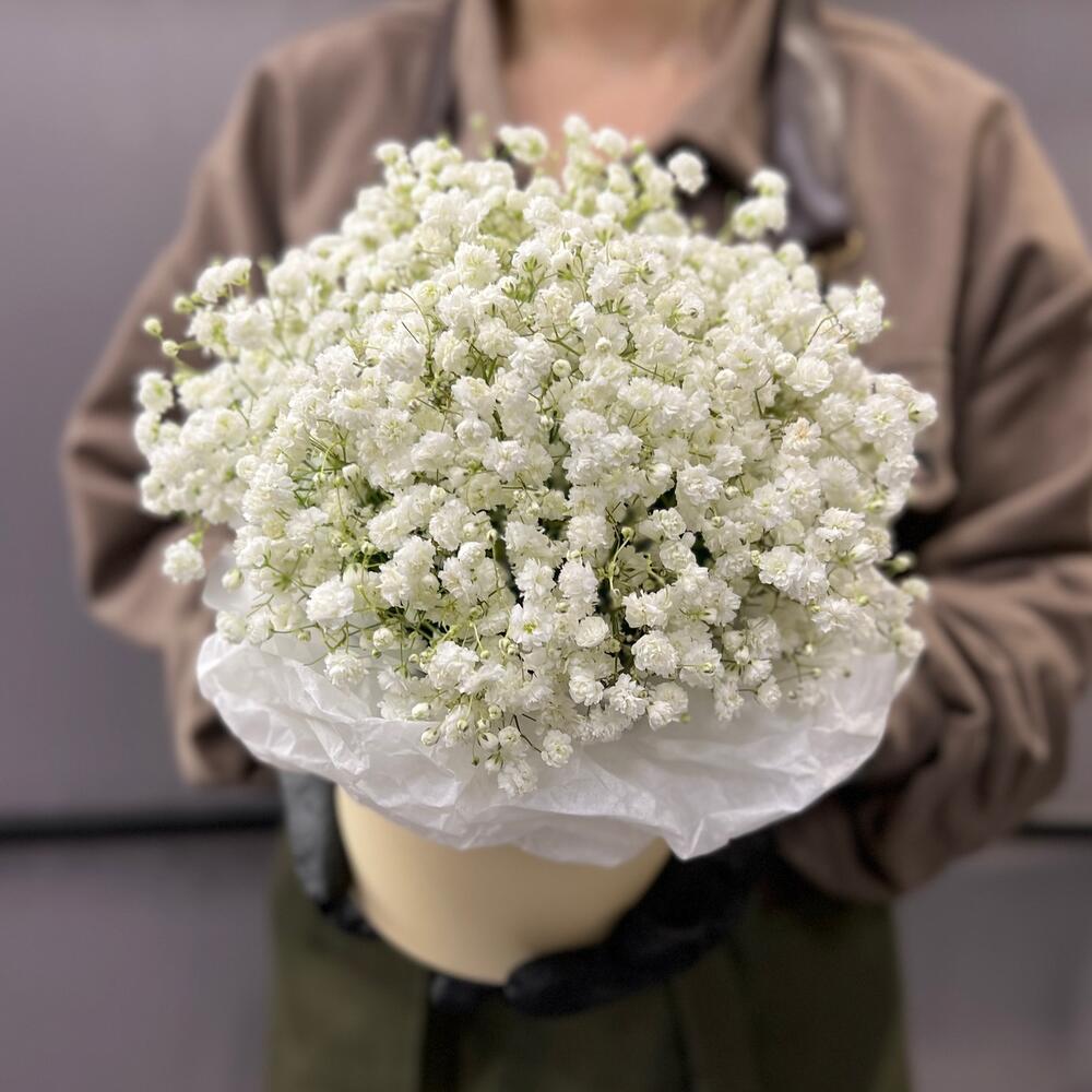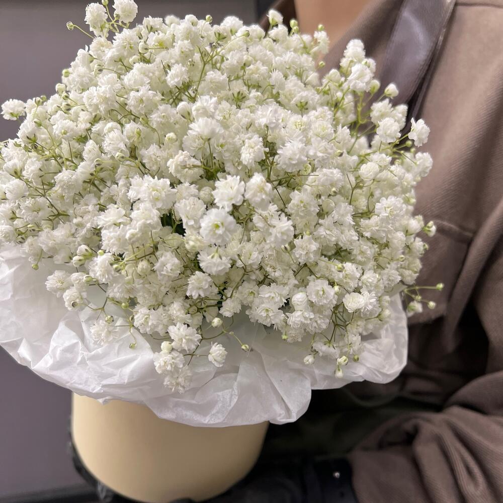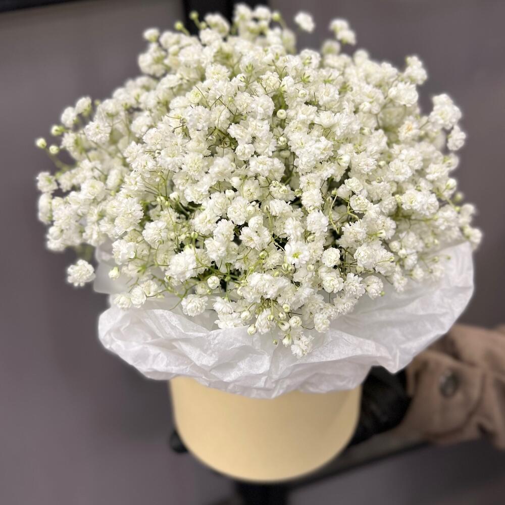 Гипсофила – 5 шт.Коробка шляпная – 1 шт.Тишью – 1 шт.Оазис флористический – 1 шт.