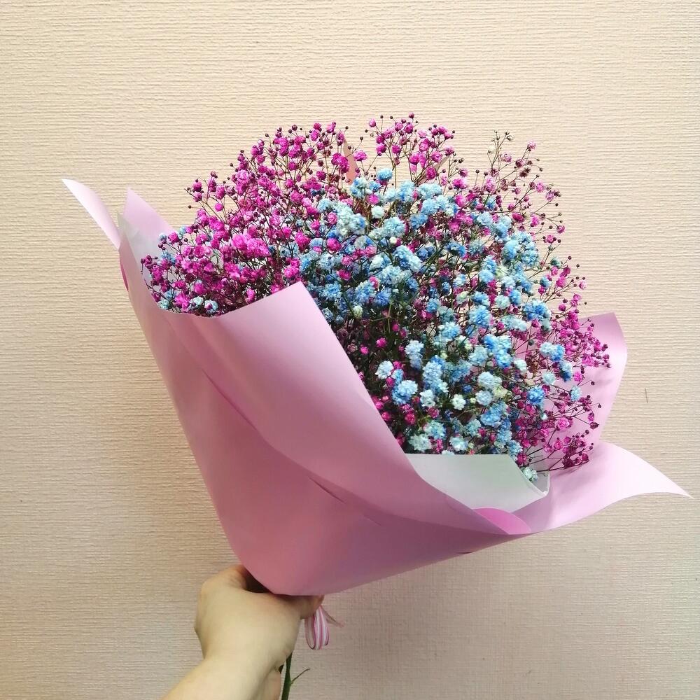 гипсофила радужная – 5 шт.Бабочка декоративная – 1 шт.Упаковка дизайнерская – 1 шт.Лента – 1 шт.
