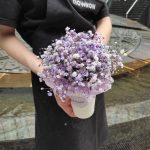 “Сиреневый туман” – композиция из гипсофилы в шляпной коробке
