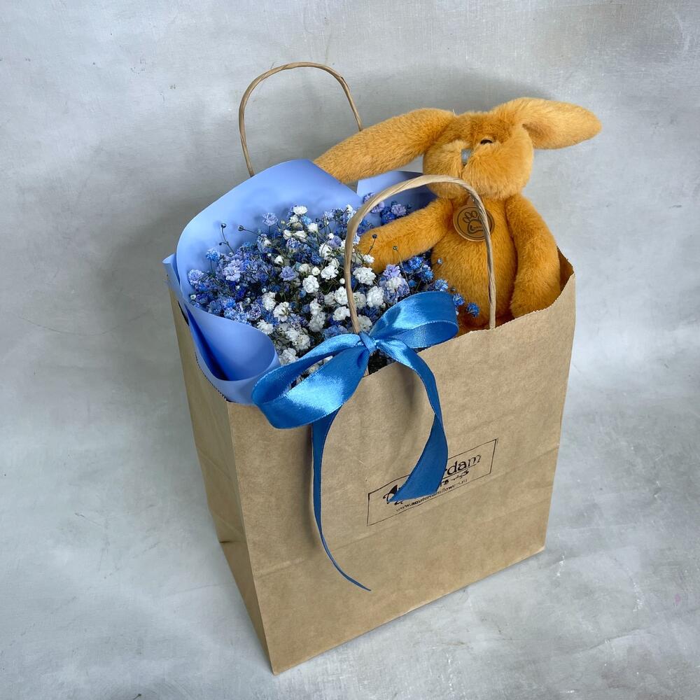 Гипсофила – 3 шт.Упаковка – 1 шт.игрушка зайчонок lapkin – 1 шт.Пакет крафт – 1 шт.