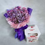 Подарочный набор – Букетик гипсофилы (размеры: 25 см высота, 20 см ширина) с коробкой конфет Raffaello. Доставляется в крафтовом пакете (высота 25 см, ширина 22 см, глубина 12 см).