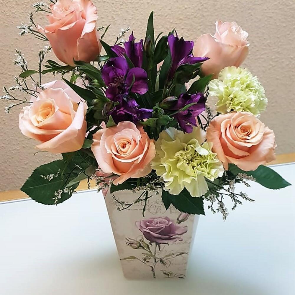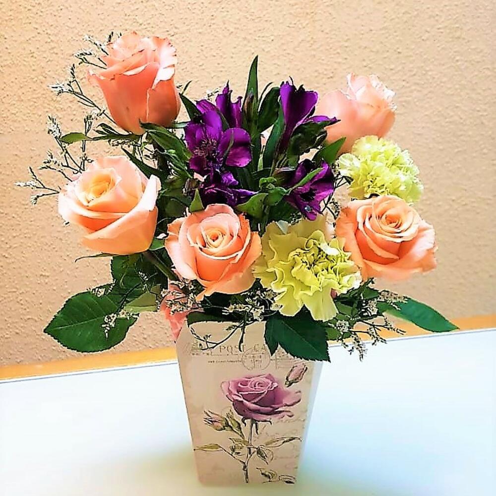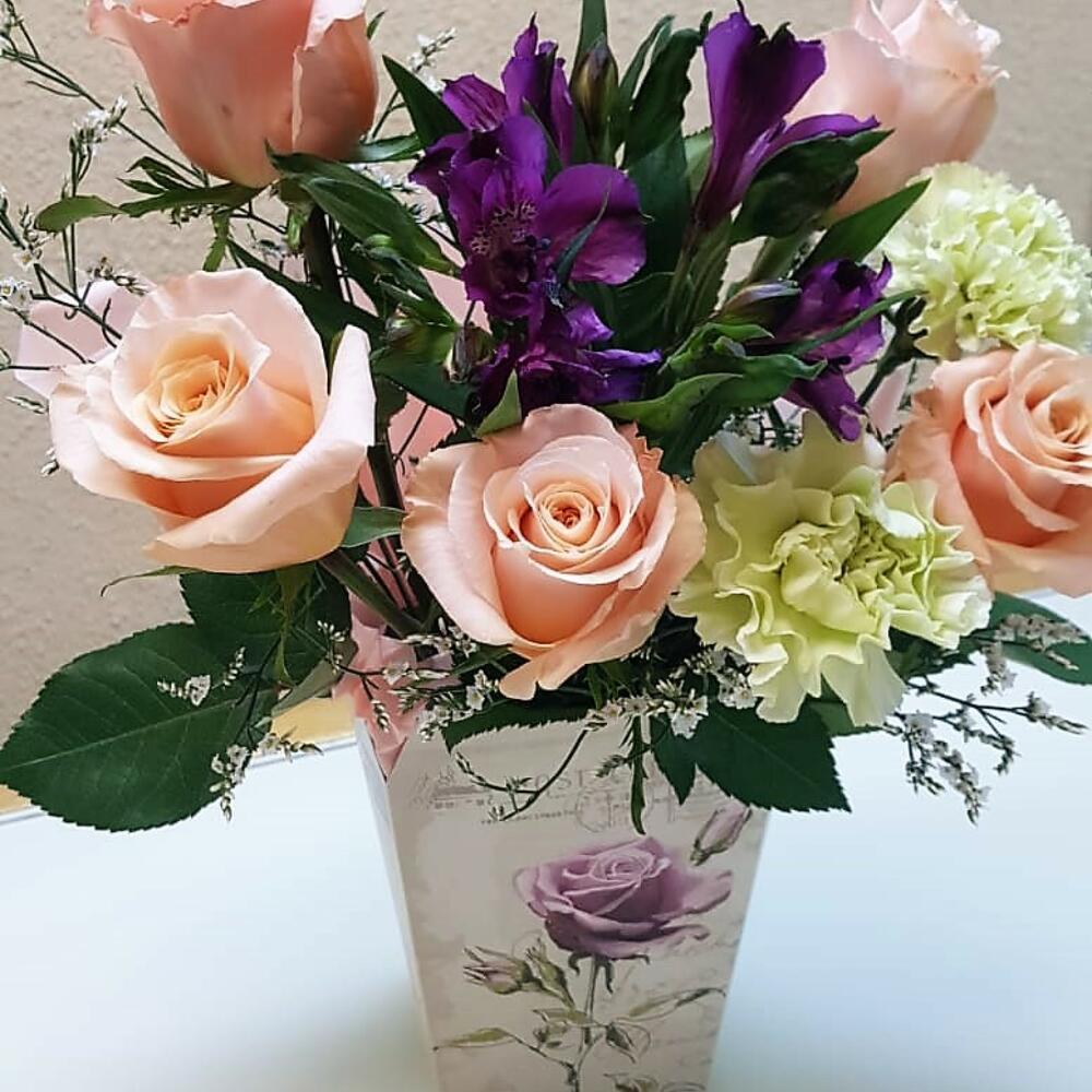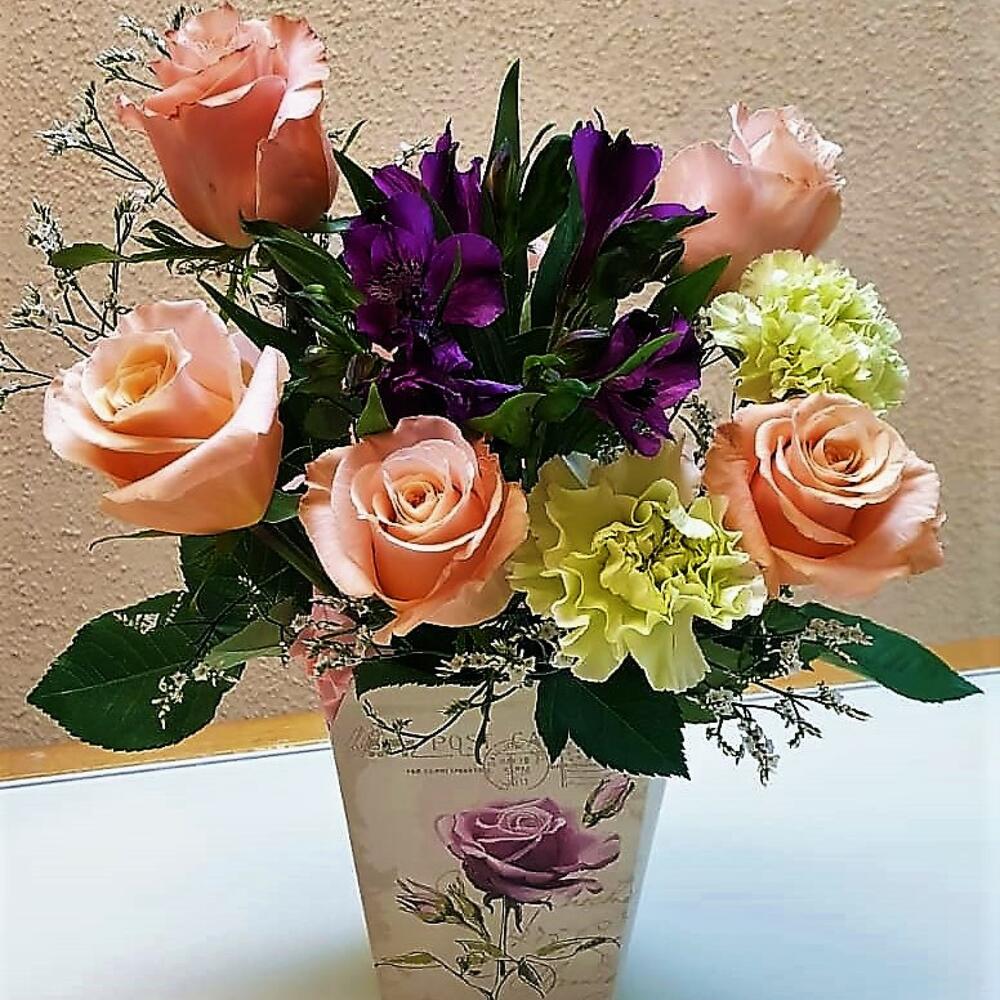 Композиция из роз и альстрамерии