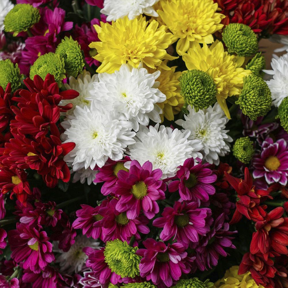 Лента – 1 шт.Упаковка дизайнерская – 1 шт.Хризантема кустовая микс – 25 шт.