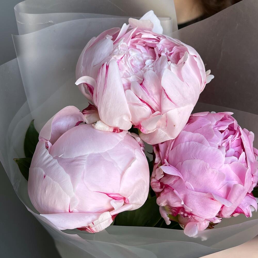 Лента – 1 шт.Дизайнерская упаковка – 1 шт.пион sarah bernard – 3 шт.