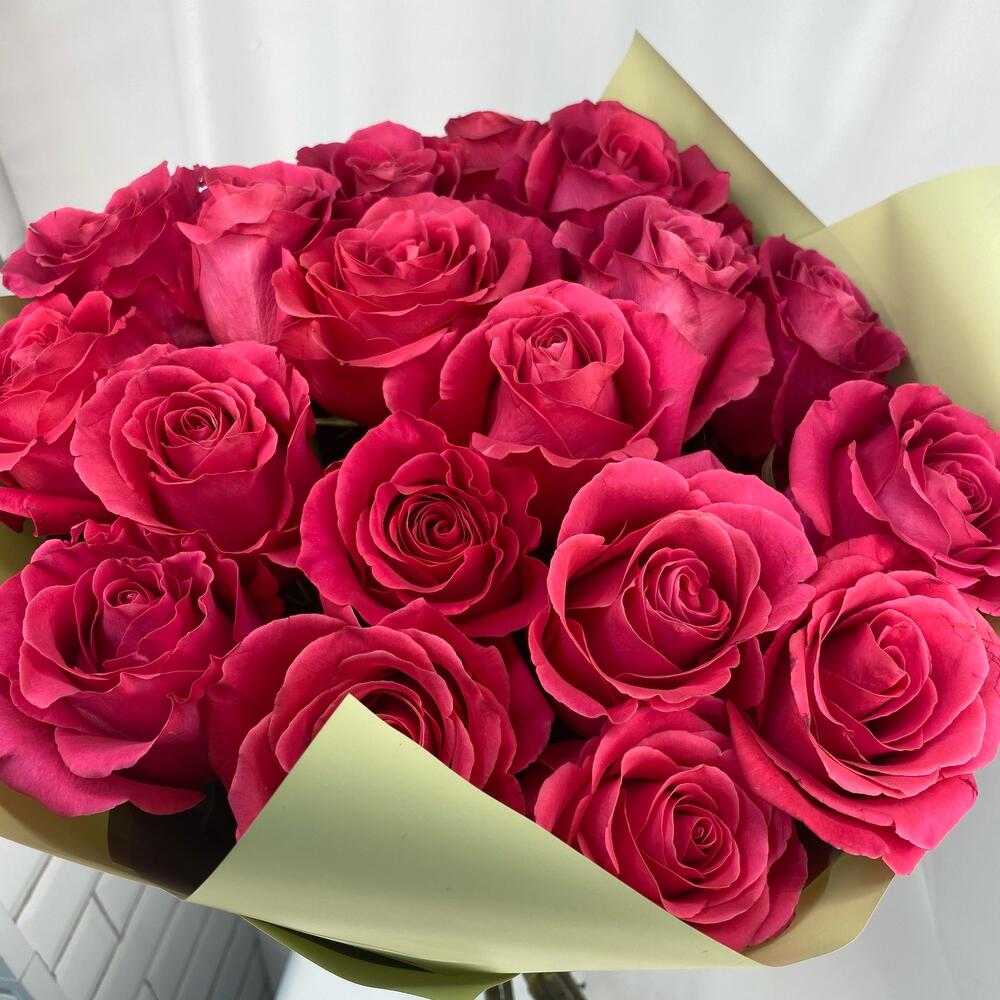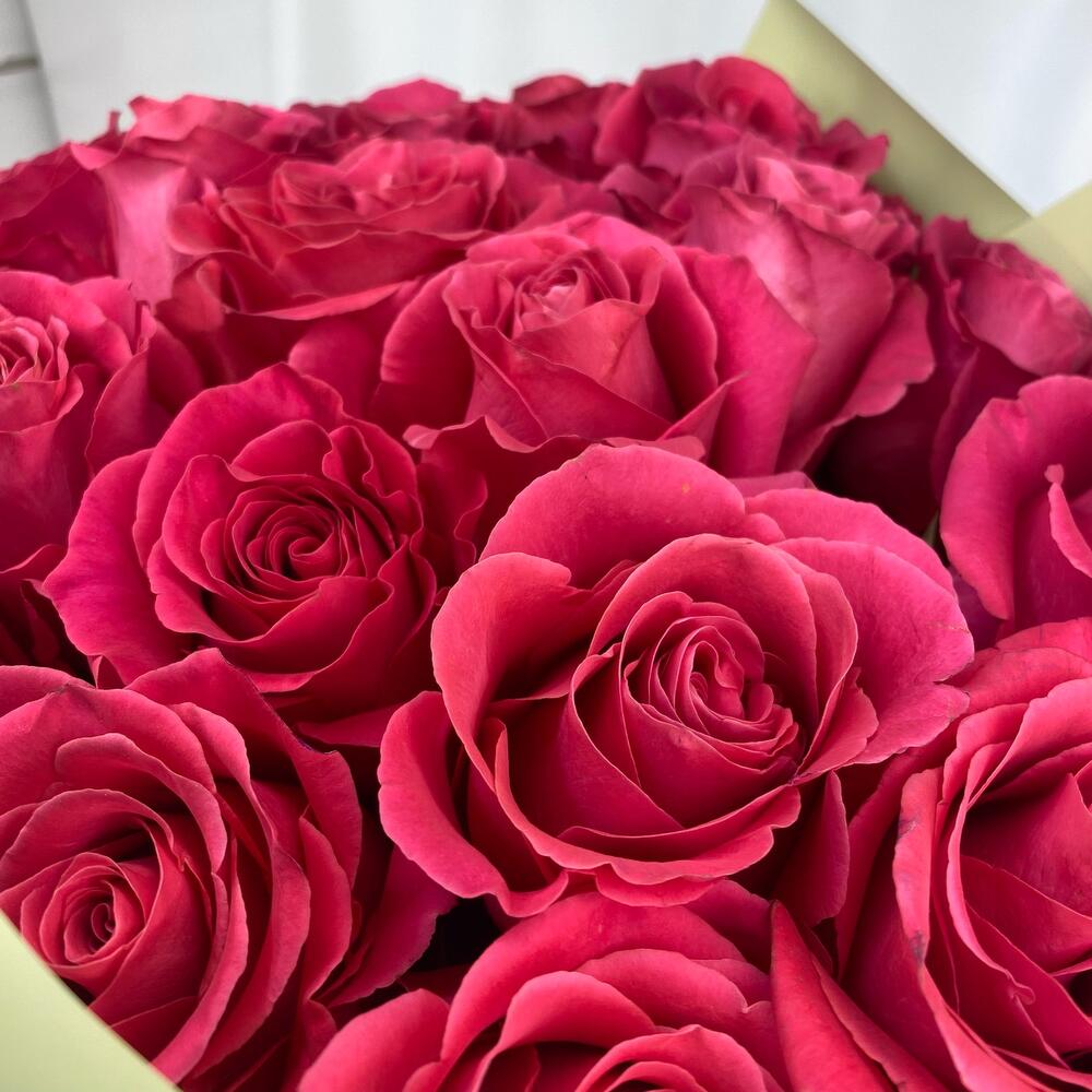Роза Эквадор – 21 шт.Упаковка – 3 шт.Атласная лента – 1 шт.