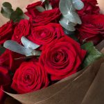 Эвкалипт – 3 шт.Упаковка дизайнерская – 2 шт.Роза красная 50 см – 15 шт.
