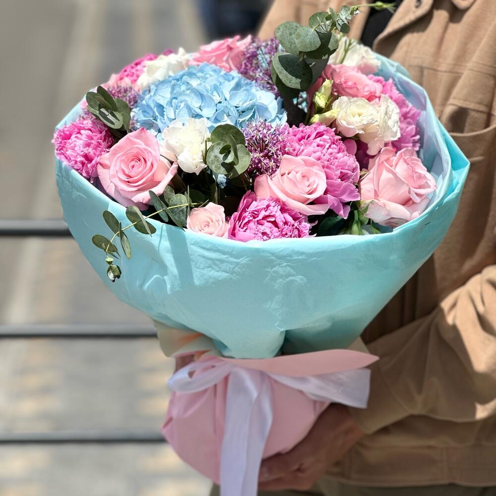 Гвоздики, Кустовые розы, Лизиантусы, Пионовидные розы, Розы