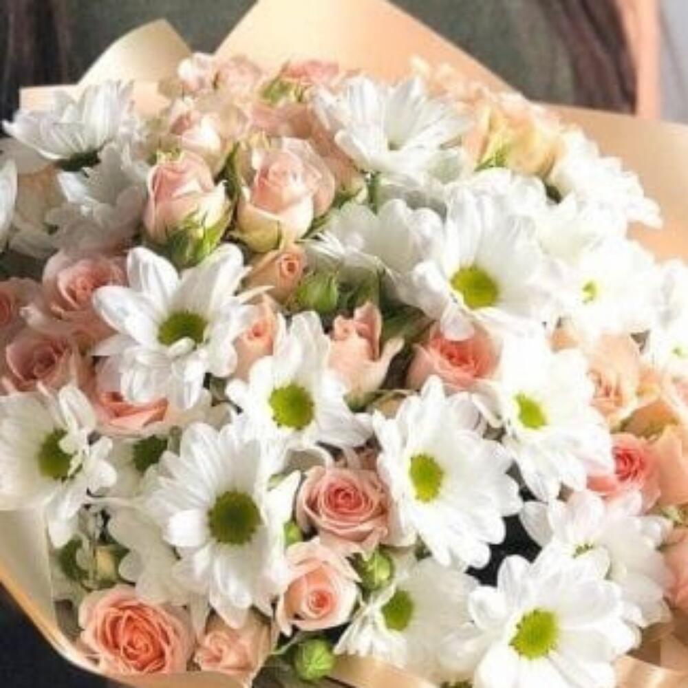 Букет из кустовых роз с хризантемой