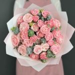 Букет из розовых кустовых Роз Мадам Бомбастик (7 шт)