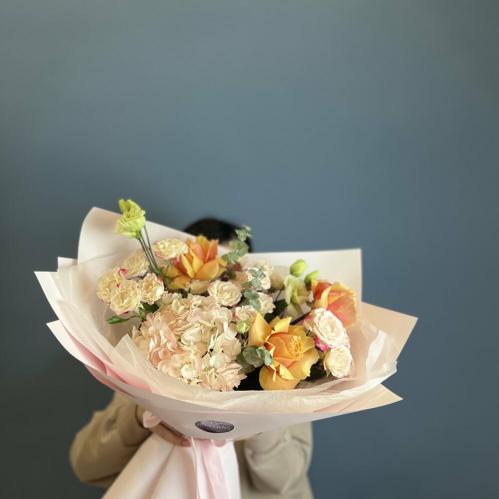 Гвоздики, Кустовые розы, Лизиантусы, Пионовидные розы, Розы