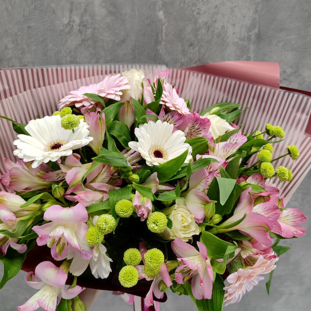 Категорий: Альстромерии, Герберы, Кустовые розы, Розы, Хризантемы