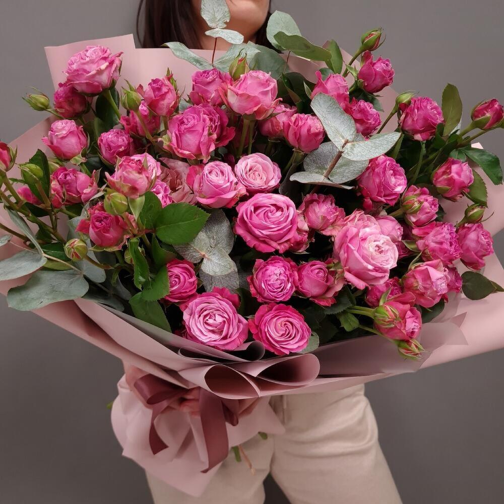 Категории: Кустовые розы, Пионовидные розы, Розы, Эвкалипт