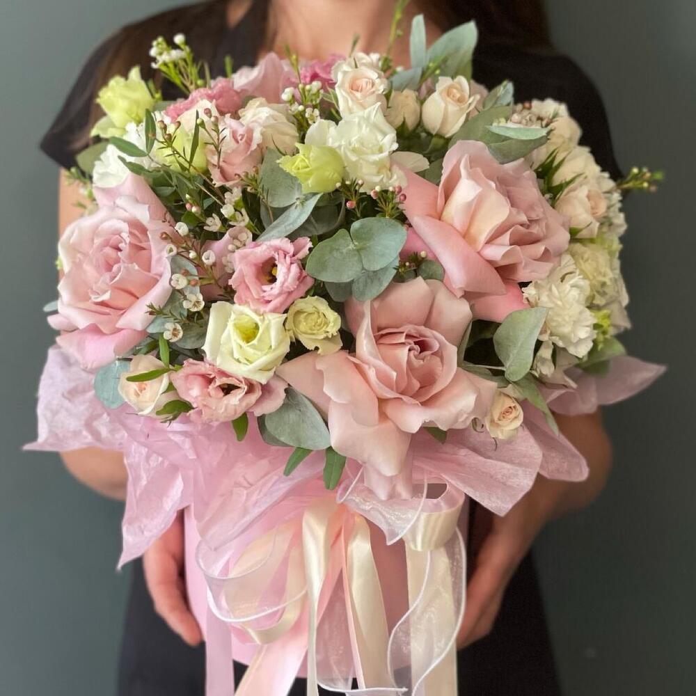 Гвоздики, Кустовые розы, Лизиантусы, Пионовидные розы, Розы