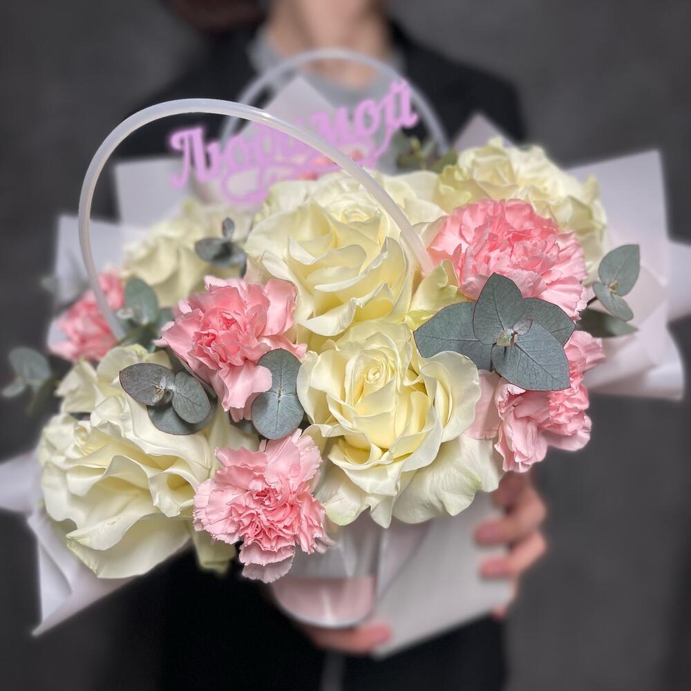 Гвоздики, Кустовые розы, Лизиантусы, Пионовидные розы, Розы