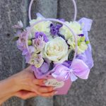 Цветы в сиреневой сумочке: нежный комплимент