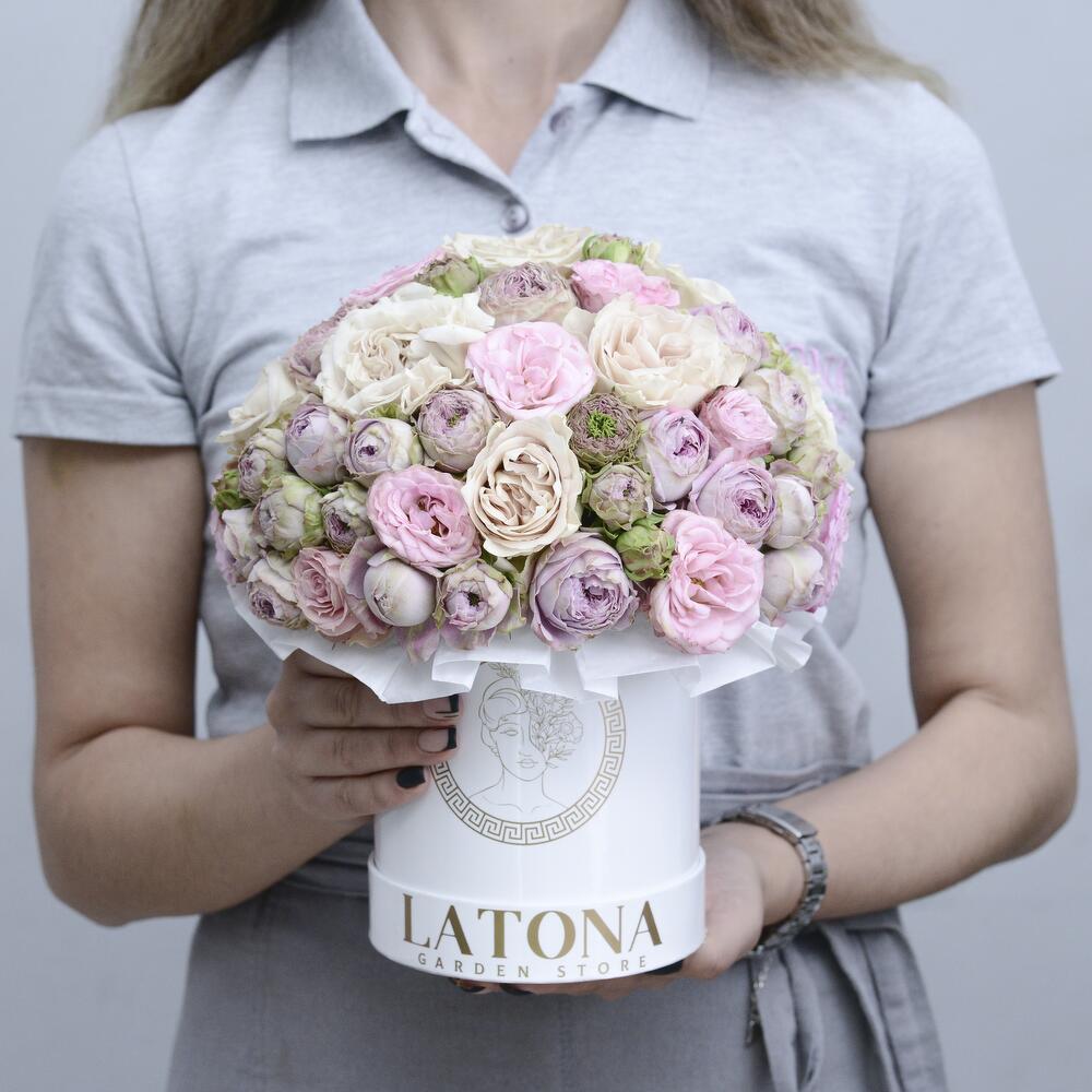 Коробка цветов ‹ABIGAIL› с кустовыми розами - Latona Flowers