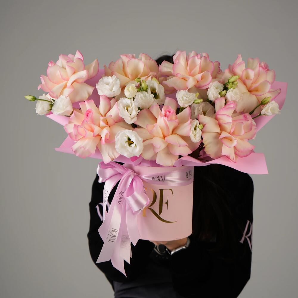 Альстромерии, Кустовые розы, Лизиантусы, Пионовидные розы, Розы, Ромашки