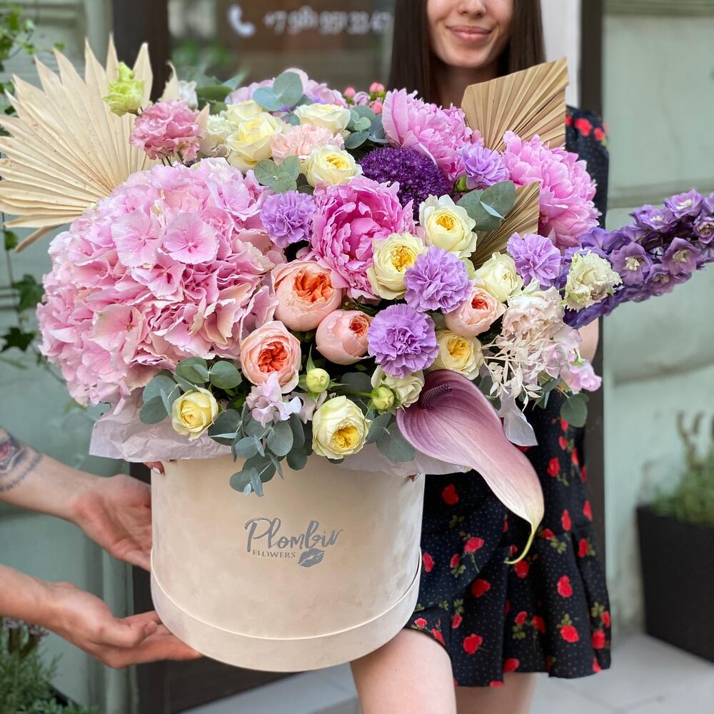 Категорий: Гортензии, Кустовые розы, Лизиантусы, Пионы, Розы, Сухоцвет
