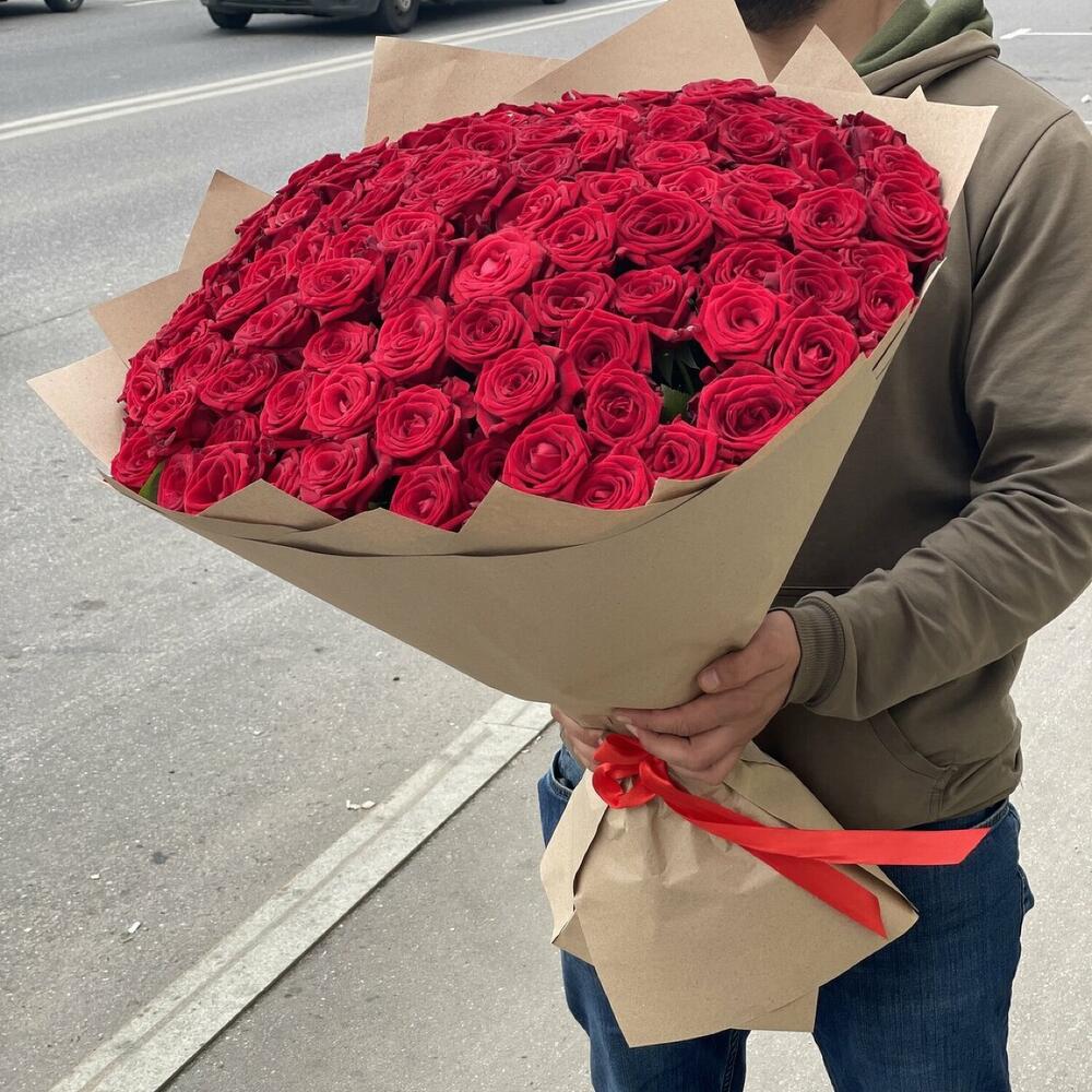 Розы 101 штук 60 см красные