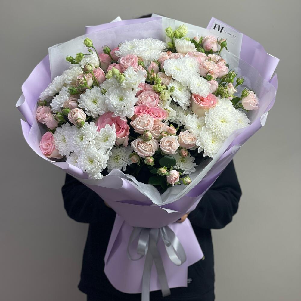 Гвоздики, Кустовые розы, Пионовидные розы, Розы