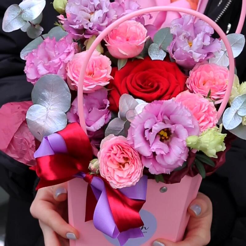 Яркая, чувственная и воздушная композиция, выполненная из роз, лизиантуса и диантуса.Такая композиция точно понравится яркой и энергичной получательнице, и будет долго радовать её.К композиции прилагается открытка с вашими пожеланиями, инструкцию по уходу за цветами и приятный комплимент от нашего магазина – шоколадка.Мы также будем рады отправить вместе с композицией конфеты, шоколад ручной работы или б/а вино по вашим пожеланиям, просто напишите нам в личные сообщения. Заказывая нашу композицию, Вы всегда получите исключительный сервис и заботу о клиенте