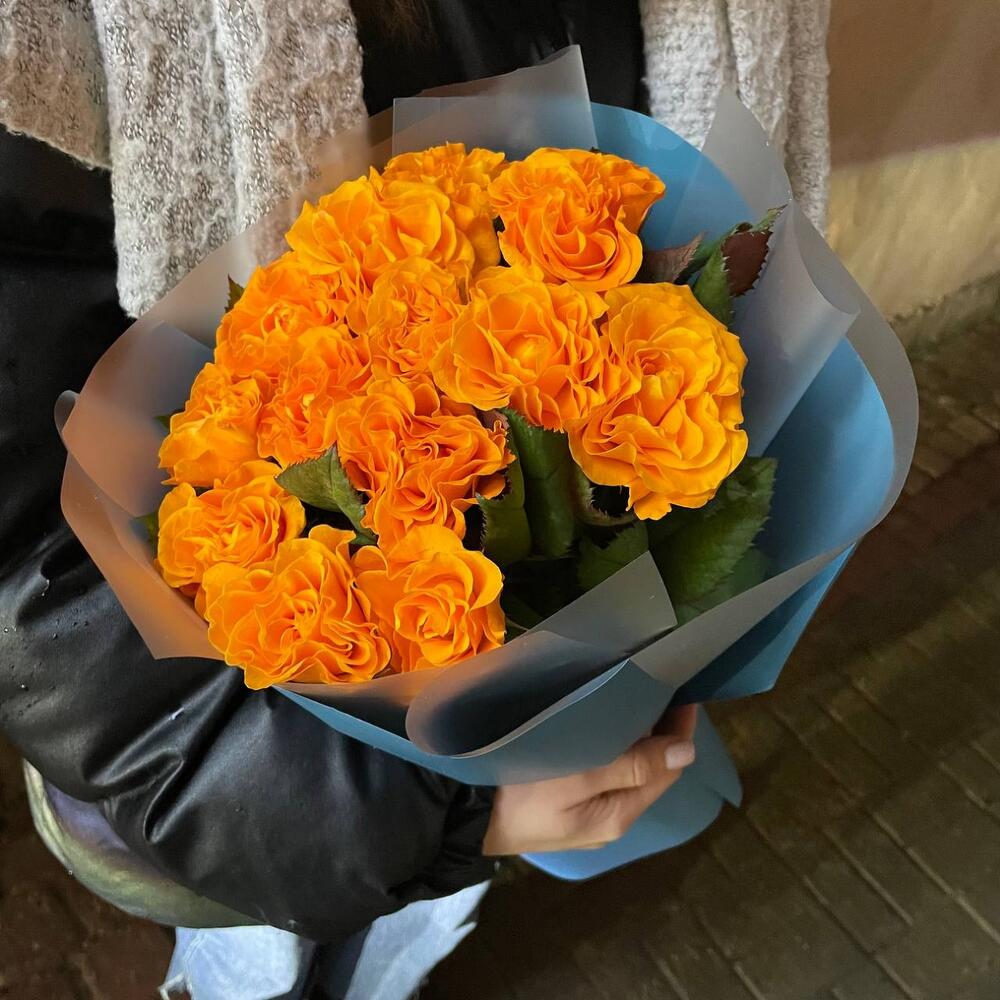 Авторская упаковка – 1 шт.роза оранжевая россия – 13 шт.