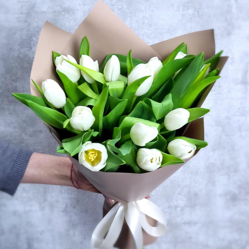15 белых тюльпанов в плёнке